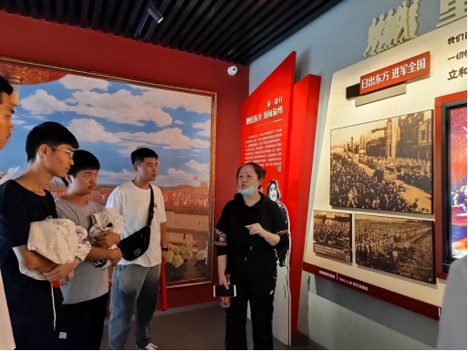 随后,先锋队进入解放重庆历史陈列馆进行参观学习,陈列馆展览内容分为解放重庆历史和二野军大校史两部分,通过图文展板、历史文物展示、科技手段的实景还原,真实再现了刘邓大军解放重庆的斗争历史。陈列馆内一幅幅战斗标图,战士们当时穿过的军装、佩戴的徽章等照片和实物,瞬间将人们带回到那段峥嵘岁月。苏老师为先锋队讲述南泉战斗的历史——南泉战斗是解放重庆过程中发生在重庆境内历时时间最长,战斗最为激烈的一场战斗,战斗持续三天两夜,100余名解放军指战员在战斗中牺牲,它重创了国民党军队构筑的重庆江南防线及南泉守敌,为我军主力部队大迂回、大包围解放重庆赢得了宝贵时间。革命先烈用鲜血、青春和生命谱写出一曲气贯长虹的壮歌,浇铸起一座光华四射的丰碑。