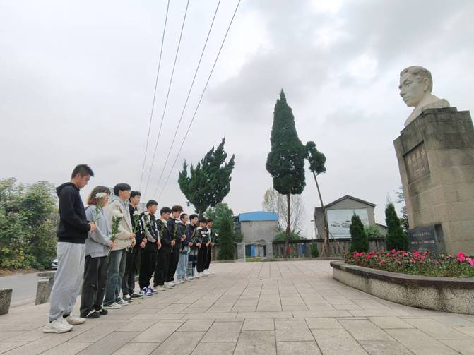 11月27日上午,全体成员来到冉钧烈士墓,在冉钧烈士纪念碑前,实践团成员刘锐林讲述了关于冉钧烈士的英勇事迹以及重庆“11.27”大屠杀惨案,表达了对坚持斗争、坚贞不屈的革命先烈们的崇高敬意。全体成员肃立在冉钧烈士纪念碑前鞠躬默哀、敬献鲜花,回顾冉钧烈士在革命年代抛头颅、扫热血的感人事迹。在庄严肃穆的冉钧烈士墓前,全体成员神情庄重,依次缓步向前为冉钧烈士敬献鲜花,向革命先烈的光辉业绩和不朽功勋致敬,表达深切缅怀和敬仰之情。