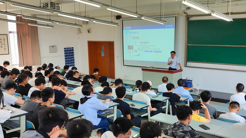 他以自己在30余年的职业生涯中所见证的机电行业变迁为引,为同学们介绍了所在行业的施工条件、尖端设备和所需岗位等,例举了机电相关行业的多个热门岗位并详细解析了各职位的工作内容、技能要求及职业晋升路径,为同学们勾勒出一幅清晰的职业发展蓝图。他指出,同学们要广泛积累知识,不仅要精通机械、电子技术,还要掌握信息技术、数据分析等新技能,以适应智能制造、智能建造领域的需求,同时要发展兴趣爱好、尝试新事物,尽早明确自己的发展方向并为之不断努力。他以中国工程院院士、中交集团首席科学家、港珠澳大桥总工程师林鸣坚持每天长跑10公里的励志故事,鼓励同学们积极参加体育锻炼,为今后的职业发展打下坚实的身体基础。