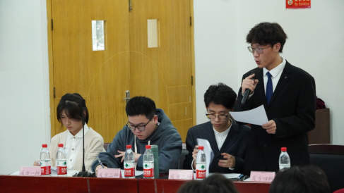冠亚军争夺赛在‘智能制造一班队’和‘国机械三班队’中展开,双方就“大学食堂引进预制菜是利大于弊还是大于利”展开激烈交锋,双方精心准备,凭借对辩题的精准把握深刻陈述己方观点,正方三辩段梦娟陈述清晰有力、逻辑严明,反方四辩韩金垚思维敏捷,迅速抓住正方逻辑漏洞开展攻击拆解……,立论与质询、对辩与申论、质询与小结、自由辩论与结辩等四个环节中,双方辩手你来我往、唇枪舌战结合自身思考,以富有感染力的语言向评委与观众同学们表达观点。观赛师生也为双方表现报以掌声鼓励。经过一番激烈角逐,“国机械三班队”获得冠军,反方四辩韩金垚获得“最佳辩手”。