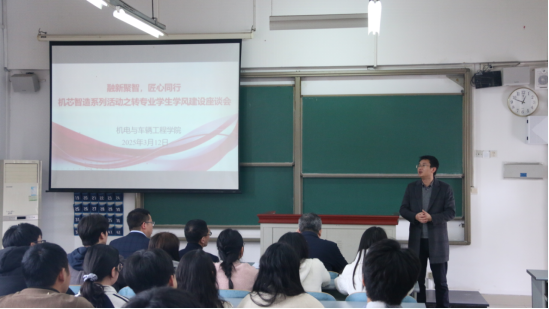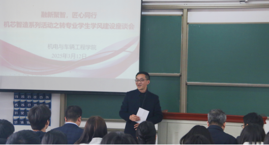 会议最后,党委书记刘建新总结讲话。他结合刚刚闭幕的2025全国“两会”,强调了新质生产力背景下机械学科的战略地位。他谈到,先进制造业是培育新质生产力的重要支撑,智能装备制造是中国从制造大国向制造强国转变的关键,因此培养高素质机械专业人才顺应时代发展需求,也是公司主动对接重庆“416”科技创新布局、“33618”现代制造业集群体系建设的重要举措。他列举雷军、黄彦钧等榜样案例,希望同学们要有科技报国的家国情怀和使命担当,将个人发展融入国家战略需求,强化科学思维方法训练,树立精益求精的大国工匠精神,努力成长为 "懂设计、精制造、善创新" 的复合型人才。同时,结合新生学习生活特点,他期望大家传承弘扬社会主义核心价值观和“红岩”“两路”精神,养成“少熬夜、少打游戏、少玩手机、少点外卖、少戴耳机”的健康习惯,博览群书、拓展视野,加强社会实践,共同营造积极向上的公司文化氛围。