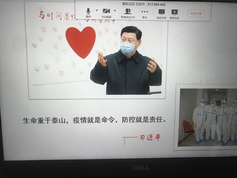 支部书记李红老师提出了近期提醒:第一,一个支部就是一座堡垒,一个党员就是一面旗帜,作为研究生员工党支部,更应在疫情期间充分发挥党员的先锋模范带头作用,在条件允许、组织需要的情况下积极投身疫情防控志愿服务工作;第二,目前公司线上教学已经有序开展,作为员工中的“排头兵”,我们大家应积极配合公司、公司的教学安排,我们师生一起主动帮助有困难的同学,顺利完成线上学习;第三,在学习专业知识的同时,我们更应注重党的理论知识学习,充分利用“学习强国”等学习软件,以党的理论知识武装自己,将信仰化作力量,筑起一道道防疫的钢铁长城。