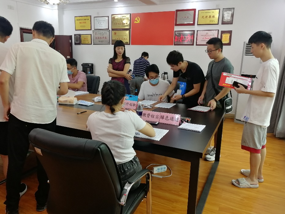 在老师和同学们的引导下,依次有序地进行身份识别、资格审查、缴费核查、证件领取、信息登记、关系转接等环节;期间,有的同学由于身份证丢失或身份证无法识别等原因,在老师、同学们的热情帮助下顺利完成报到注册。