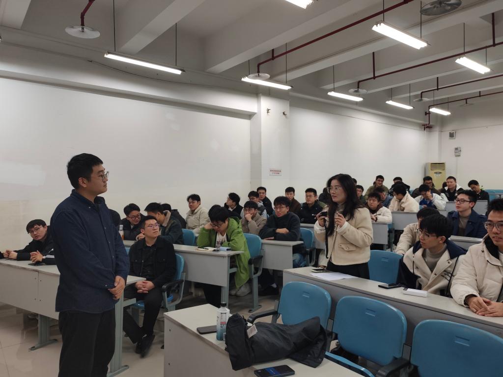 主题报告环节,张翔博士、研三研究生李林同学和吕峰尧同学分别从不同视角作报告。主题报告从选题的背景及意义、研究内容和方法、前期基础与预期成果、学位论文进度安排等多个方面进行了经验分享,并对容易出现的问题给出了应对方法和解决路径。最后在提问互动环节,三位报告人同在座的同学就开题报告中的注意事项进行了深入的交流。