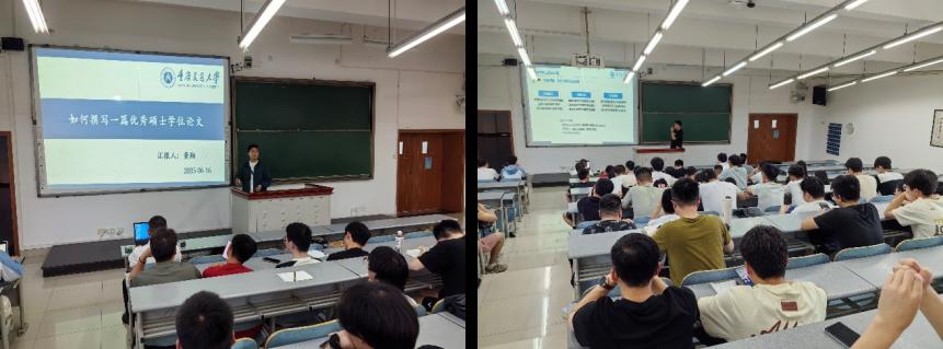 此次研学分享邀请了3位优秀毕业研究生分享成长经历。曹轩(2022级机械工程学术学位硕士)以“研究生期间如果发表高水平学术论文”为题,从选题战略、凝练创新点、处理审稿意见等方面分享了发表高水平学术论文的科研实践。吕峰尧(2022级车辆工程专业学位硕士)以“研究生应该如何高效开展学位论文研究”为题,从明确问题、设计研究、数据分析等方面分享了如何高效开展学位论文研究工作。黄翔(2022级机械工程专业学位硕士)以“如何撰写一篇优秀的硕士学位论文”为题,从如何撰写发表一篇小论文入手,分享了小论文与学位论文的关系,以及如何撰写一篇优秀的硕士学位论文。