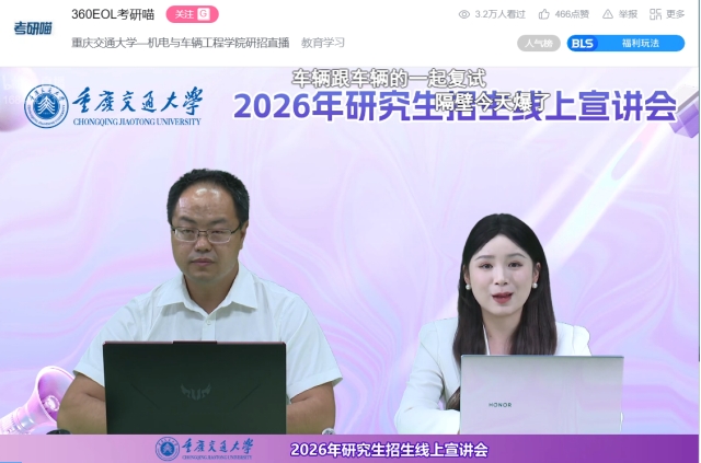 陈仁祥详细介绍了公司和公司发展历史、学科专业、团队力量、科研平台、科学研究、合作交流等方面的情况,重点介绍了“交通装备设计理论与方法”“智能网联新能源汽车”“交通智能装备与机器人”“交通装备先进制造”四个学科方向及特色优势,并就研究生招生、培养、资助体系等为考生和家长作了详细介绍。