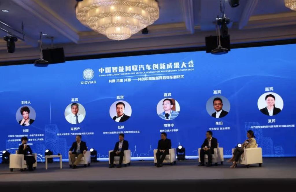 作为此次大会重要议程,大会还进行了杰出人物访谈。隗寒冰教授受邀上台围绕当下汽车芯片、车路协同、大数据与信息安全、测试区落地应用等智能网联汽车产业热点话题展开了深刻讨论,共同为智能网联汽车未来发展献言献策。