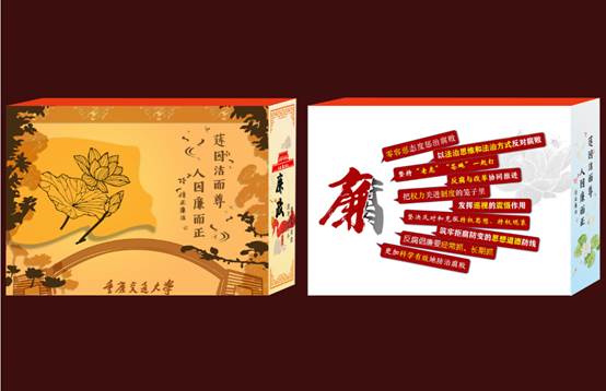 侯江钰同学四人一组的创意设计作品《留芳古今——纸雕灯》,以新时代反腐倡廉为主题,融入了“出水芙蓉”、“芝兰玉树”、“祥云宫灯”等中国传统文化元素,整体端庄大气,主题生动鲜明。作品正面左方是beats365官方网站李子湖中的莲花,右方是“莲因洁而尊,人因廉而正”的至理名言,“莲”出淤泥而不染,濯清涟而不妖,音同“廉”象征着廉洁清正;作品背面是反腐倡廉的相关词条;侧面分别是天安门和一池清莲,象征着国家惩治腐败的决心和廉政治理的清明盛世。