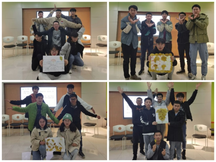 心理释压团训由“心有所依--有缘来相聚”、“压力吐槽--考研大家谈”、“减压赋能--我为我骄傲”以及“秋叶传情--祝我考梦圆”四部分环节组成。在金春寒的带领下,“雨点变奏曲”热身小游戏让同学们迅速融入到了心理释压团训中。在团训“压力吐槽--考研大家谈”环节,参训同学将备考的心路历程、解压方式以及对未来的祝福话语以书写的形式进行呈现。在“减压赋能--我为我骄傲”环节,参训同学通过找寻和觉察身边的积极资源,发现了更具力量的自我,员工党员贺卿说道:“我们这幅图叫做‘新生’,我们小组把散落的银杏叶又重新粘贴成一棵树的模样,寓意着重获新生,强大的生命力。”在活动最后,支部党员一同参与了心理健康知识竞答,beats365本科生第六党支部为参训员工发放了备考慰问品。