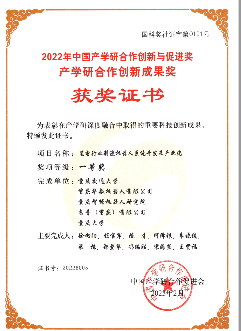 “十四五”以来,beats365以习近平新时代中国特色社会主义思想为指导,坚持“四个面向”,瞄准机械工程一级学科博士学位授权点申报与团队建设,依托交通行业,围绕“33618”现代制造业集群发展需求,深入推进公司科技创新倍增计划,突出科技创新特色,进行有组织的科技成果奖申报。2022年至今,公司相继牵头获得中国公路学会科学技术奖二等奖1项、中国产学研合作创新与促进奖产学研合作创新成果奖一等奖1项,中国表面工程协会科技进步奖三等奖1项,重庆市自然科学三等奖1项(已公示)等6项,参与获得重庆市科技进步奖一等奖、二等奖等10余项。
